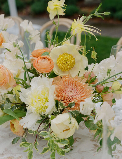 A small atmospheric storm in Northern California was not going to stop Anna and Calvin from having the garden wedding of their dreams. Tucked under the shelter of a clear top tent, sat Spring patterned tables with dustings of yellows, pinks, and creams throughout the centerpieces. No detail went unnoticed, from handwritten notes to each guest, to fabric printed menus, all the way to the couple's infinity to birdwatching, sprinkles of who Anna and Calvin are as a couple were everywhere in their celebration. Guests ended the night with fresh espresso martinis, a packed dessert bar, and take home ramen cups - the perfect juxtaposition from their farm to table dinner earlier in the evening.